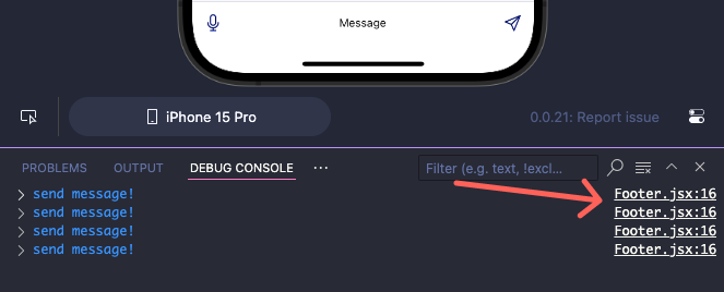 In the logs panel, you can click the underlined component name on the right side of the panel to quickly jump to the exact line of code where the console log was called.