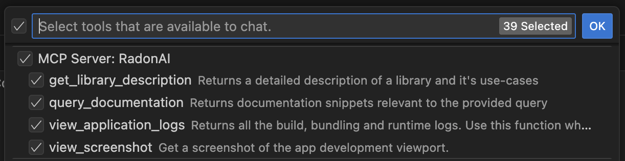 Radon IDE automatically configures and activates Radon AI MCP tools for you.
